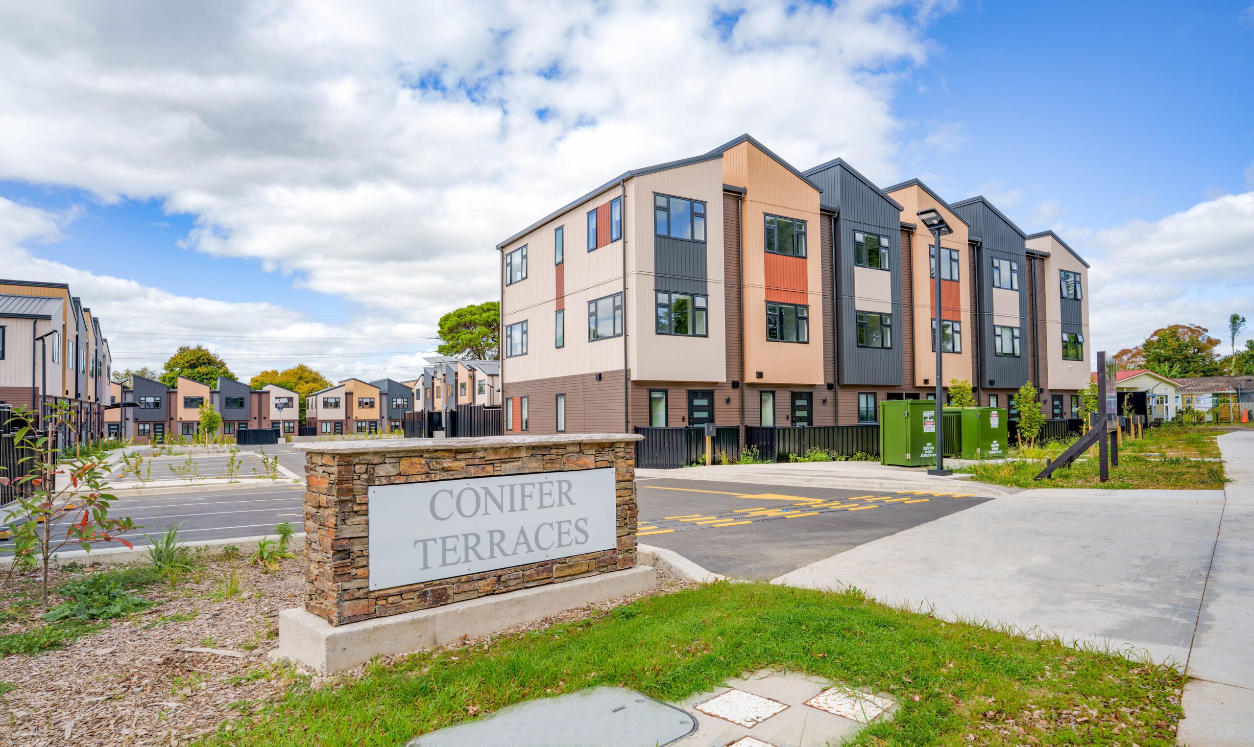 Conifer Terraces is a recently completed collection of modern two and three bedroom townhouses, located in the well-established suburb of Takanini. Each home is thoughtfully designed to offer spacious, comfortable living, creating a welcoming environment that supports modern family lifestyles.