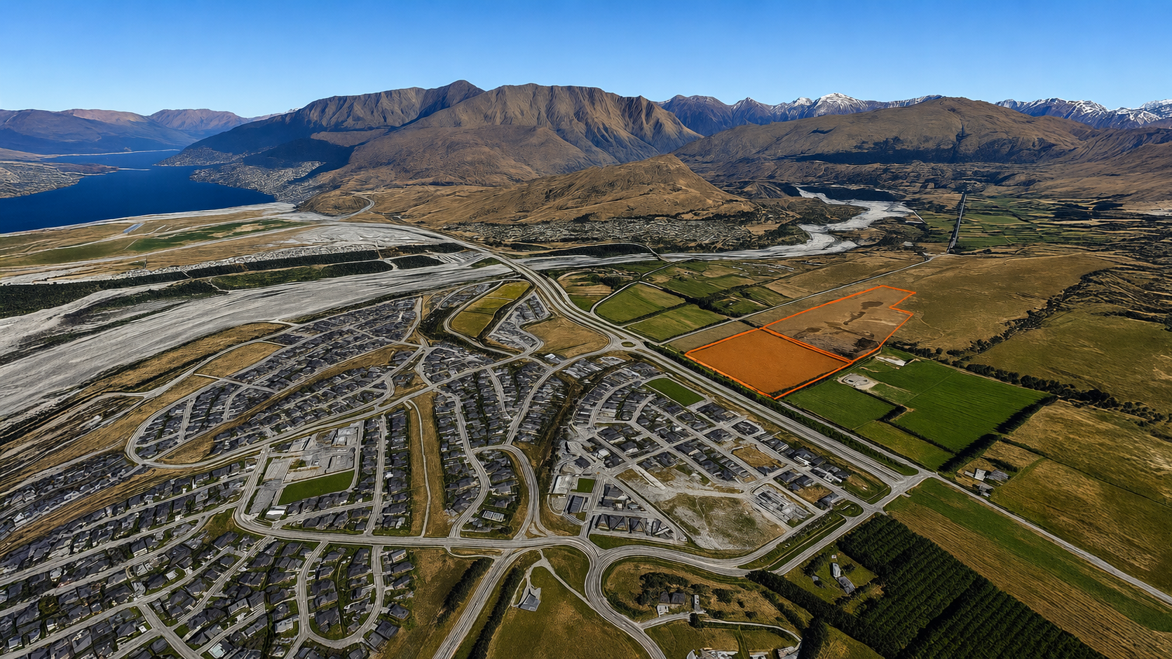 A masterplanned residential neighbourhood at Ladies Mile, Queenstown. The scheme has been developed through a coordinated design process, integrating planning, architecture, and landscape to establish a cohesive and well-structured urban environment.